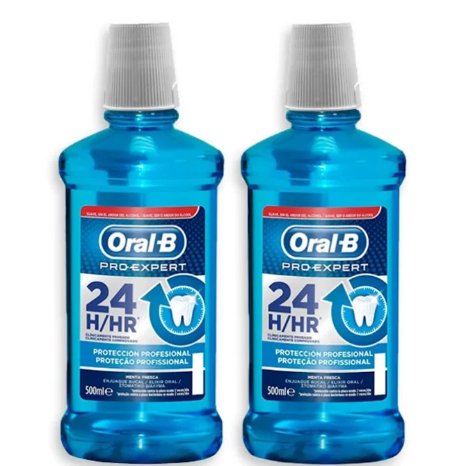 Este elixir bucal contiene activos que limpian en profundidad, alcanzando todas las zonas de la cavidad bucal. Su acción reviene, retrasa la aparición y combate las caries, placa dental…a lo largo de 24 horas, de aroma y sabor a menta fresca. Recomendada para personas que necesitan una higiene bucal adicional. Como resultado del uso continuado de Oral- B Pro-Expert Enjuague Bucal Protección Profesional se obtiene una limpieza profunda y duradera, el aliento se mantiene fresco, los dientes lucen brillantes y saludables.