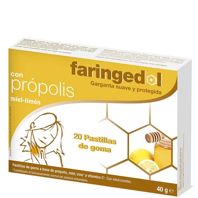 Própolis Miel-Limón Pastillas de Faringedol son gominolas con vitamina C que suavizan la garganta.