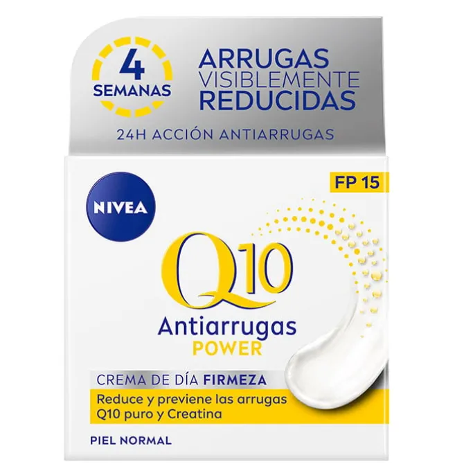 De textura ligera se distribuye uniformemente y se absorbe fácilmente. Recomendada para el rejuvenecer y retrasar la aparición de arrugas Nivea Q10PLUS Anti-arrugas Cuidado de Día SPF15 luce una piel más flexible, luminosa y tersa.