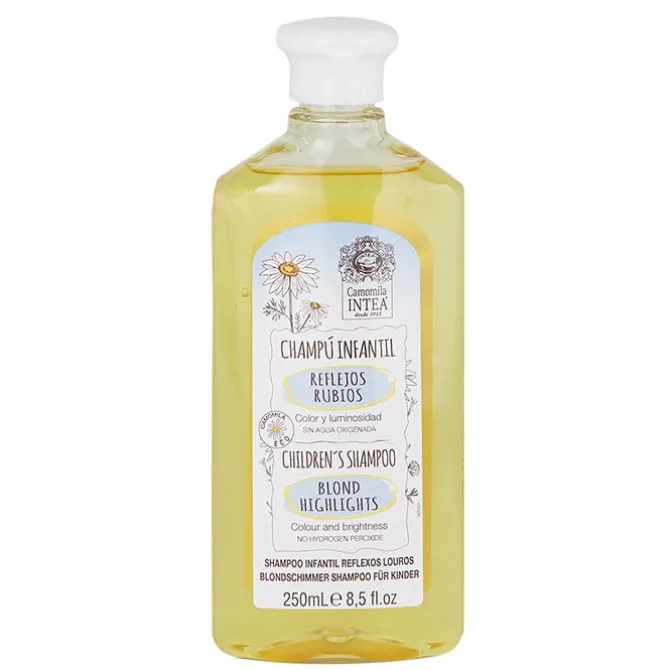 Reflejos Rubios de Camomila Intea, es un champú infantil que ensalza y mantiene el color de los cabellos rubios.