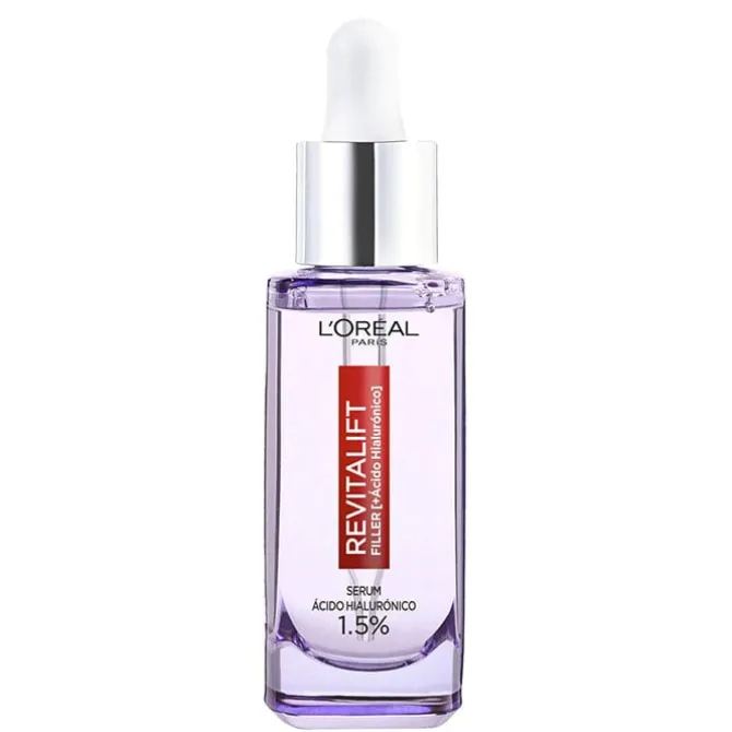 Contiene una pipeta que facilita la dosificación del producto y recoge la cantidad necesaria en cada aplicación. De textura ultraligera, no grasa se distribuye uniformemente por el rostro y es de rápida absorción. Recomendado para todo tipo de piel L’Oréal Revitalift Filler Sérum Anti-Arrugas rejuvenece la piel progresivamente, luce más flexible, tersa y jugosa.