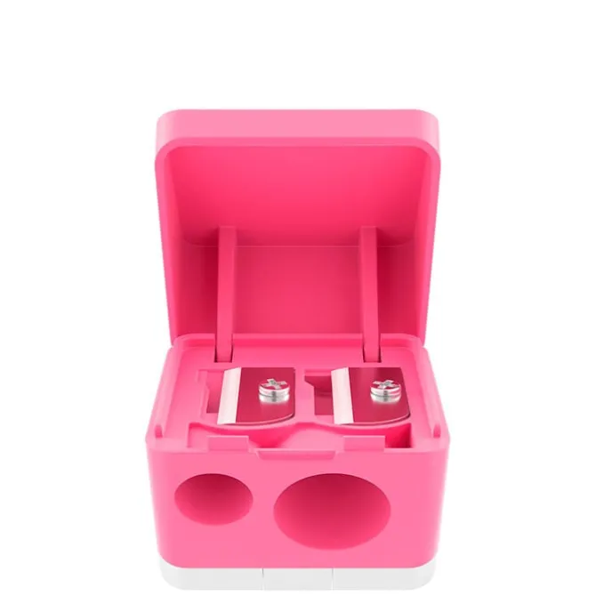 Este sacapuntas cosmético 2 en 1 mantiene las puntas afiladas para lograr una aplicación óptima y un resultado preciso. Incluye dos orificios, uno para lápices estándar y otro para jumbos.