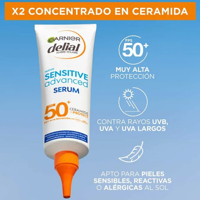 Su textura no grasa ni pegajosa sin manchas blancas se distribuye uniformemente facilitando su rápida absorción y logrando una agradable sensación de piel desnuda. Delial Sensitive Advanced Sérum SPF50+ es perfecto para proteger las pieles sensibles, reactivas o alérgicas al sol y lucir un bronceado saludable y radiante.