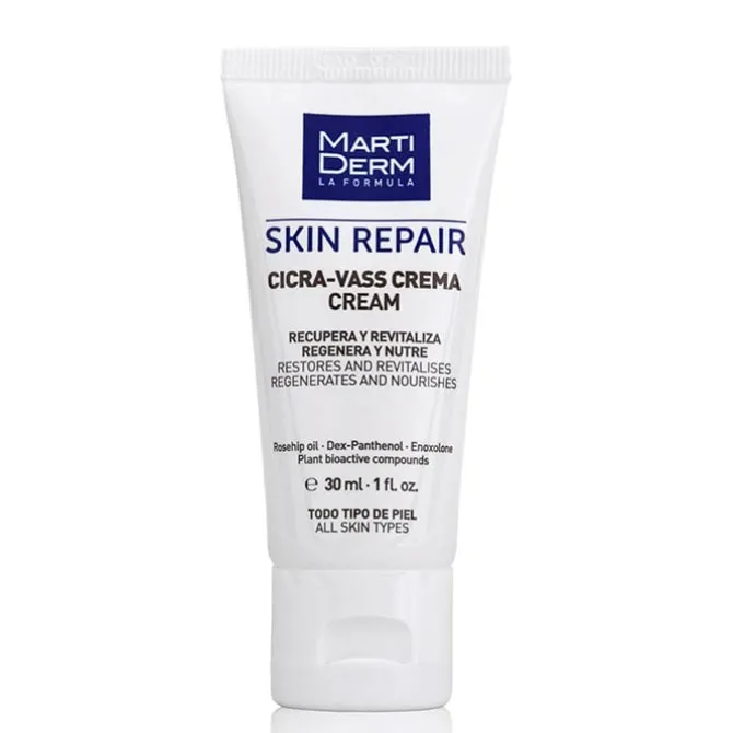 SKIN REPAIR Cicra-Vass Crema de MartiDerm es una crema que repara, calma y regenera áreas de piel que necesite cicatrizar.