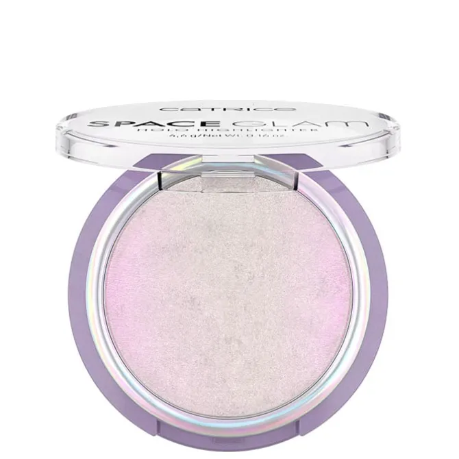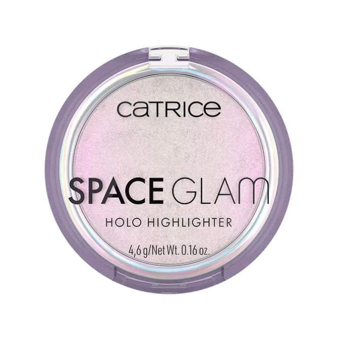 Space Glam Holo Iluminador de Catrice es un polvo iridiscente en acabado holográfico multi cromático.