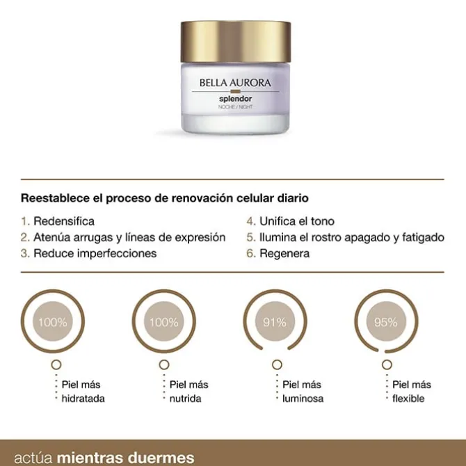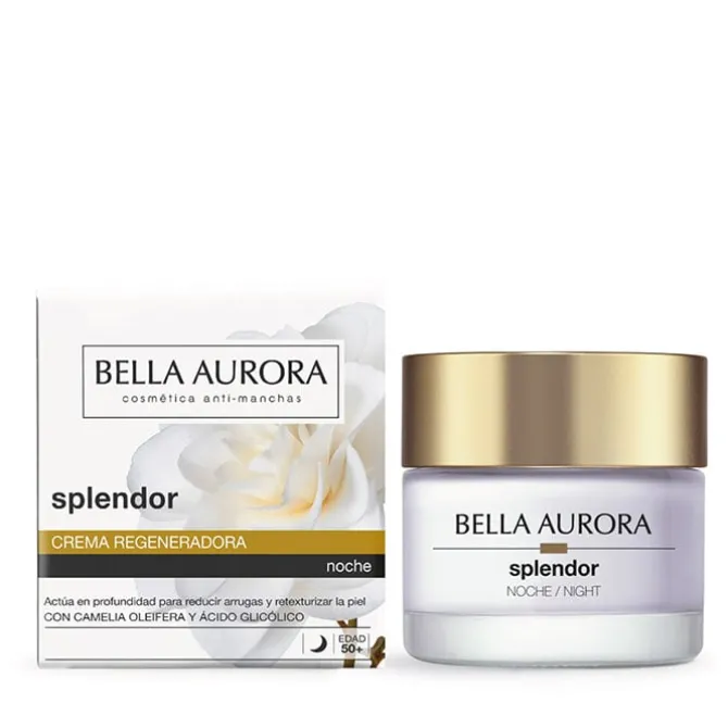 Splendor 10 Noche de Bella Aurora es una crema de tratamiento facial anti-edad nocturno.