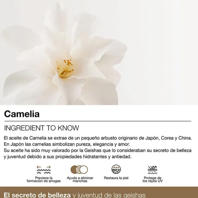 Contiene en su formulación ácido glicólico que tiene propiedades regeneradoras y activan el proceso de regenerador diario que la piel joven tiene con normalidad. Además cuenta con aceite de Camelia oleífera, símbolo de belleza que hidrata y nutre la piel, proporcionándole luminosidad.