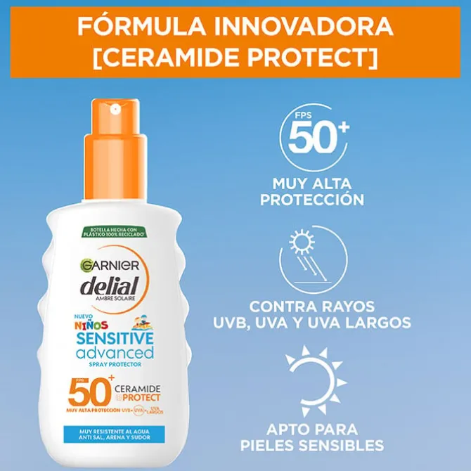 Spray Sensitive Advanced Niños SPF50+ de Delial es un spray de muy alta protección solar especial para la piel de los niños.