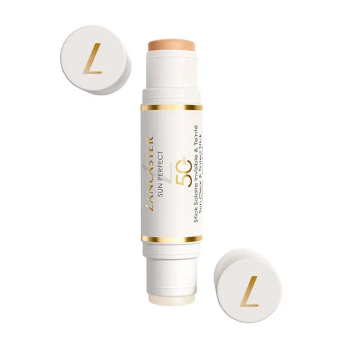 Sun Perfect Youth Protection Sun Clear & Tinted Stick SPF50 de Lancaster es una barra de doble cara de protección solar para zonas sensibles.
