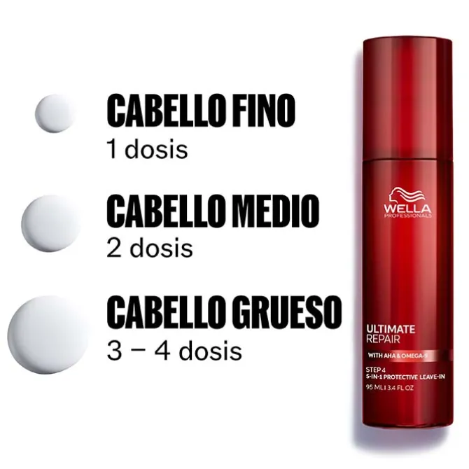 Contiene AHA y omega 9 que reconstruyen y fortalecen profundamente las fibras capilares a nivel interno y externo protegiendo el color. De textura crema ligera, se distribuye fácil y cómodamente gracias a su dofificador. Wella Professionals Ultimate Repair Protective Leave-In está indicado para facilitar el peinado y restaurar intensamente el cabello dañado o desvitalizado. Es apto para todo tipo de cabellos y texturas: medio, graso, fino, grueso, liso, ondulado, rizado, ensortijado, asiático y afro. El cabello mejora su resistencia, textura y color visiblemente, luce visiblemente 8 veces más suave, controlado, flexible y radiante.