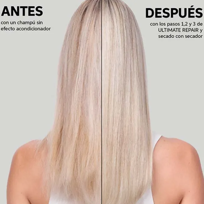 Este protector reparador es un tratamiento 5 en 1 multi-protector de uso profesional que protege el cabello frente a las roturas, la radiación UV, calor hasta 230 °C, el daño mecánico y el encrespamiento. Pertenece a la línea Ultimate de Wella Professionals y su formulación vegana, de tecnología highlights: patentada ha sido testada dermatológicamente, es libre de parabenos y crueldad animal.