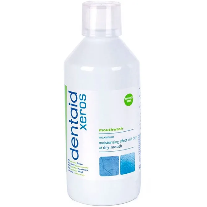 Este colutorio libre de gluten contiene betaína con efecto hidratante de larga duración, alantoína que alivia las molestias de la irritación causadas por la boca seca, xilitol y fluoruro sódico que además de hidratar la boca, remineraliza el esmalte dental y previene la aparición de caries. Recomendado para personas con la boca seca o xerostomía Xeros Dentaid Colutorio equilibra el flujo salival, calma la sensación de boca seca, previene el mal aliento y la aparición de caries.